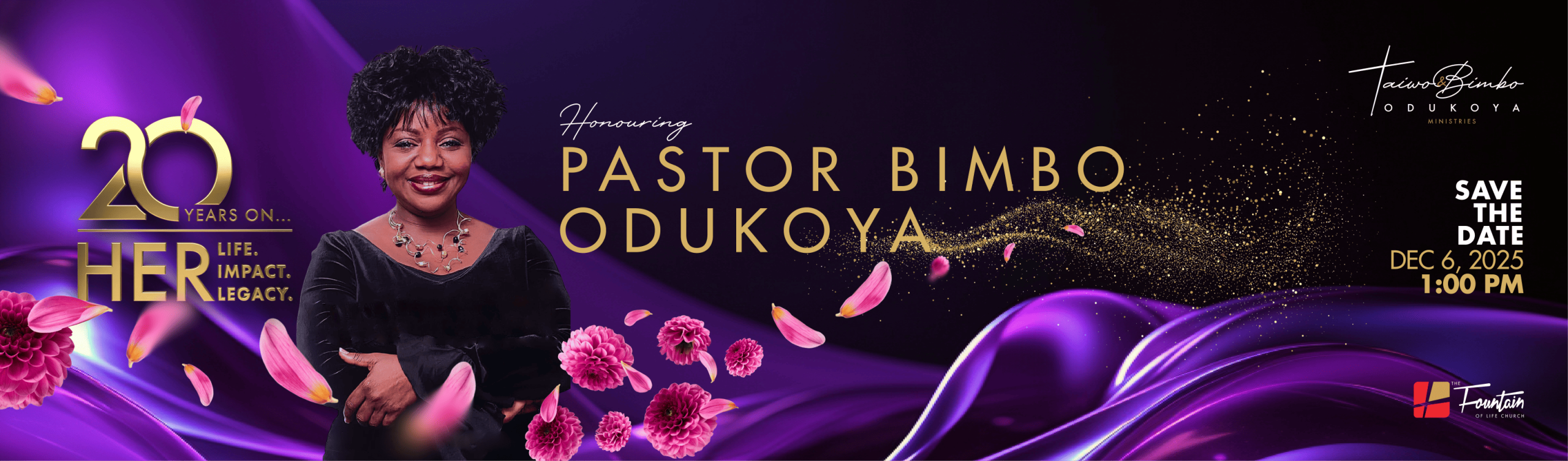 Two decades after her call to glory, The Fountain of Life Church will hold a special service in honour of Pastor Bimbo Odukoya’s extraordinary life, impact, and legacy.Join us as we remember, reflect, and rejoice together.